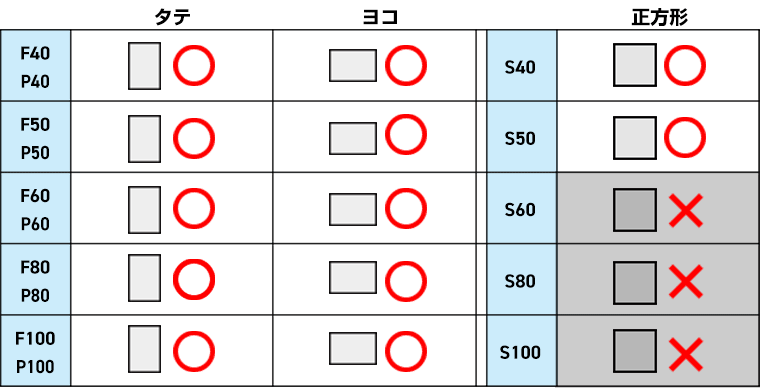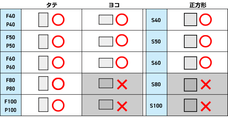 最小8号 (版画は最小なし )~最大100号まで。詳しくは下記表参照のこと。
